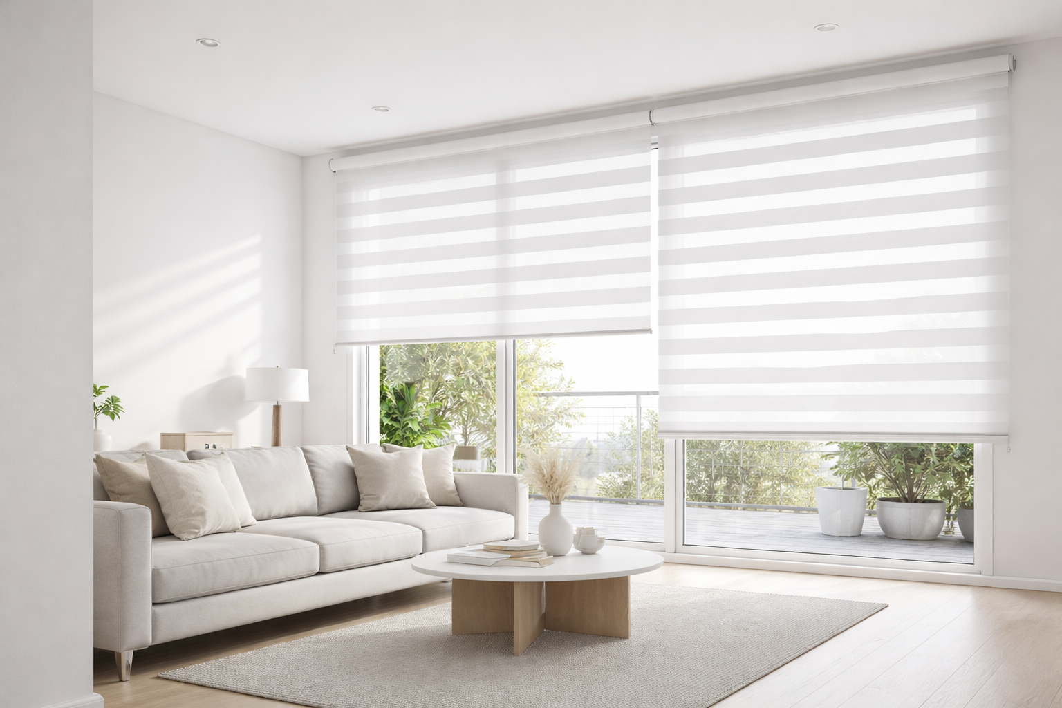 Opta por persianas enrollables, Sheer Elegance o Vertiline, que se integran discretamente en la arquitectura sin invadir el espacio.