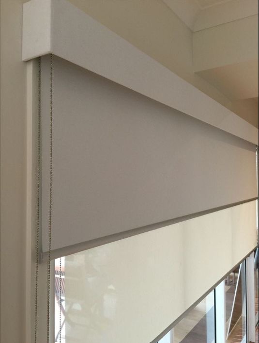 Ambas persianas están integradas bajo una misma fascia superior, lo que lo hace ver limpio y uniforme.